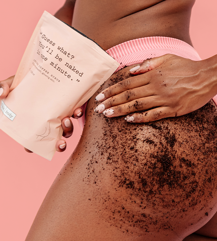My sweet blend of coffee grinds, cacao and cold-pressed oils exfoliates and nourishes for soft, glowing skin.