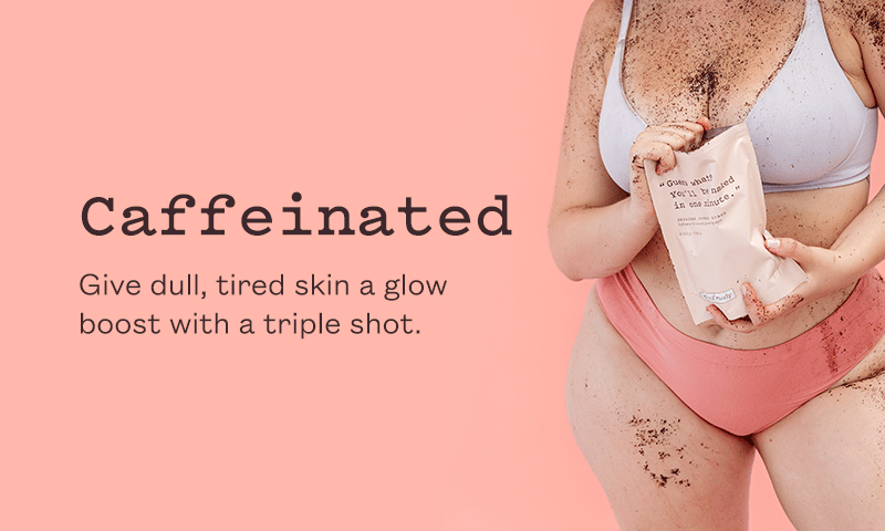 Use our Caffeinated products when your skin’s feeling flat, tired or in need of a glow boost. A good scrub, a little hydration and you’re back in business.